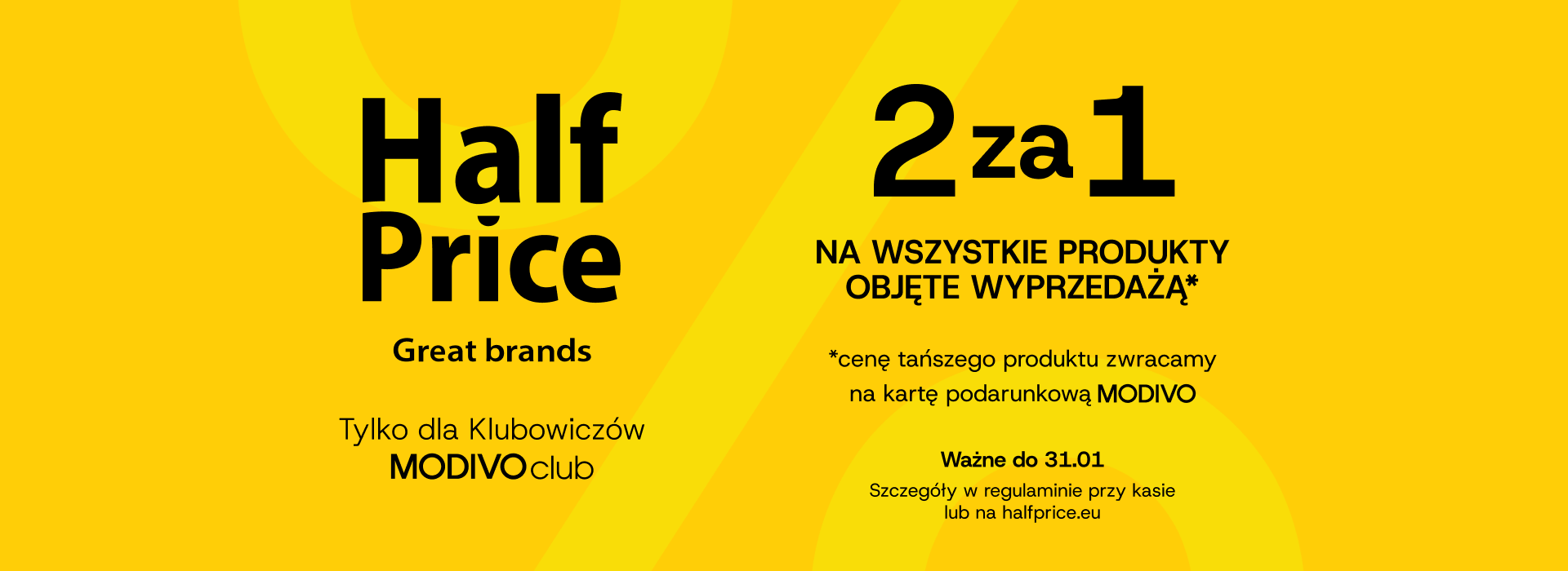 Akcja 2za1 w HalfPrice! Wybierz 2 produkty z wyprzedaży, a zwrot za tańszy z nich otrzymasz na kartę podarunkową MODIVO! Zapoluj na perełki od światowych marek!